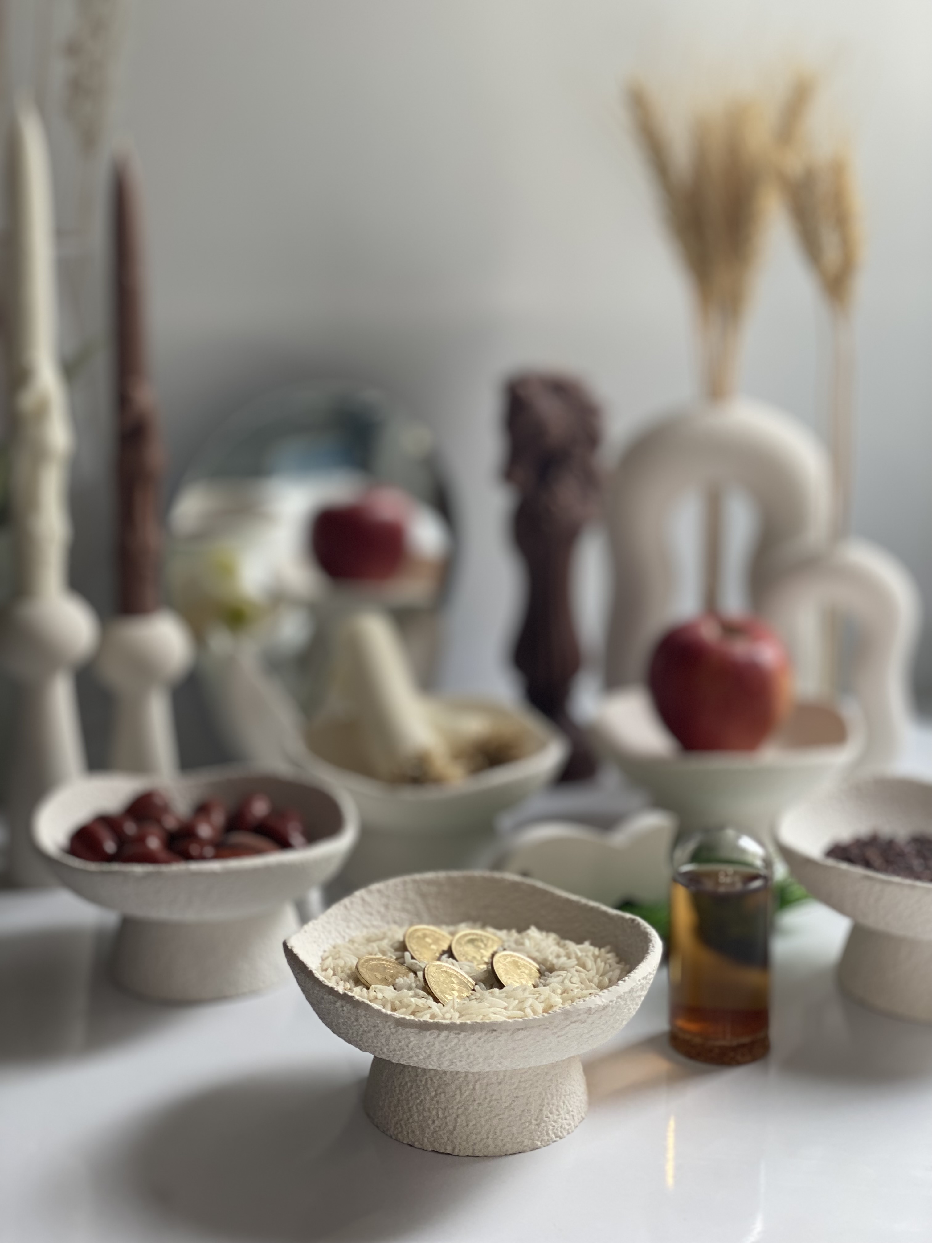 قیمت ست بدون احتساب شمع اسب لاریس،شمع تخم مرغ و شیشه سرکه حساب شده،ست شامل(ست گلجا تکسچر، ۵ عدد کاسه تکسچر ، ماهی،دو عدد شمعدان، شمع قلمی،پایه آینه و آینه)
